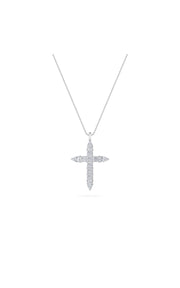 Bold symbolism meets radiant elegance in this exquisite diamond cross pendant, beautifully crafted in luminous 14K white gold. Designed to capture both faith and luxury, the cross features a stunning combination of pear-shaped and princess-shaped lab-grown diamonds, expertly arranged to create dimension, brilliance, and refined symmetry. The design showcases four pear-shaped lab-grown diamonds totaling 1.33 carats, adding graceful curves and distinctive sparkle to the cross silhouette. Complementing them are seven princess-shaped diamonds totaling 2.17 carats, offering sharp, clean facets that enhance the overall brilliance. With a total diamond weight of 3.50 carats and 11 diamonds in all, each stone is graded F color and VS clarity, delivering exceptional fire and clarity. Securely prong-set for maximum light performance, the pendant is suspended from an 18-inch cable chain and finished with a reliable lobster lock for comfortable everyday wear. Meaningful yet luxurious, this diamond cross necklace is a timeless statement piece ? perfect as a personal expression of faith or a treasured gift for special occasions.